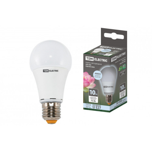 Лампа светодиодная LED 10Вт Е27 220В 4000К А60 груша | SQ0340-0083 | TDM